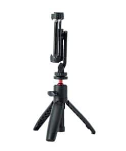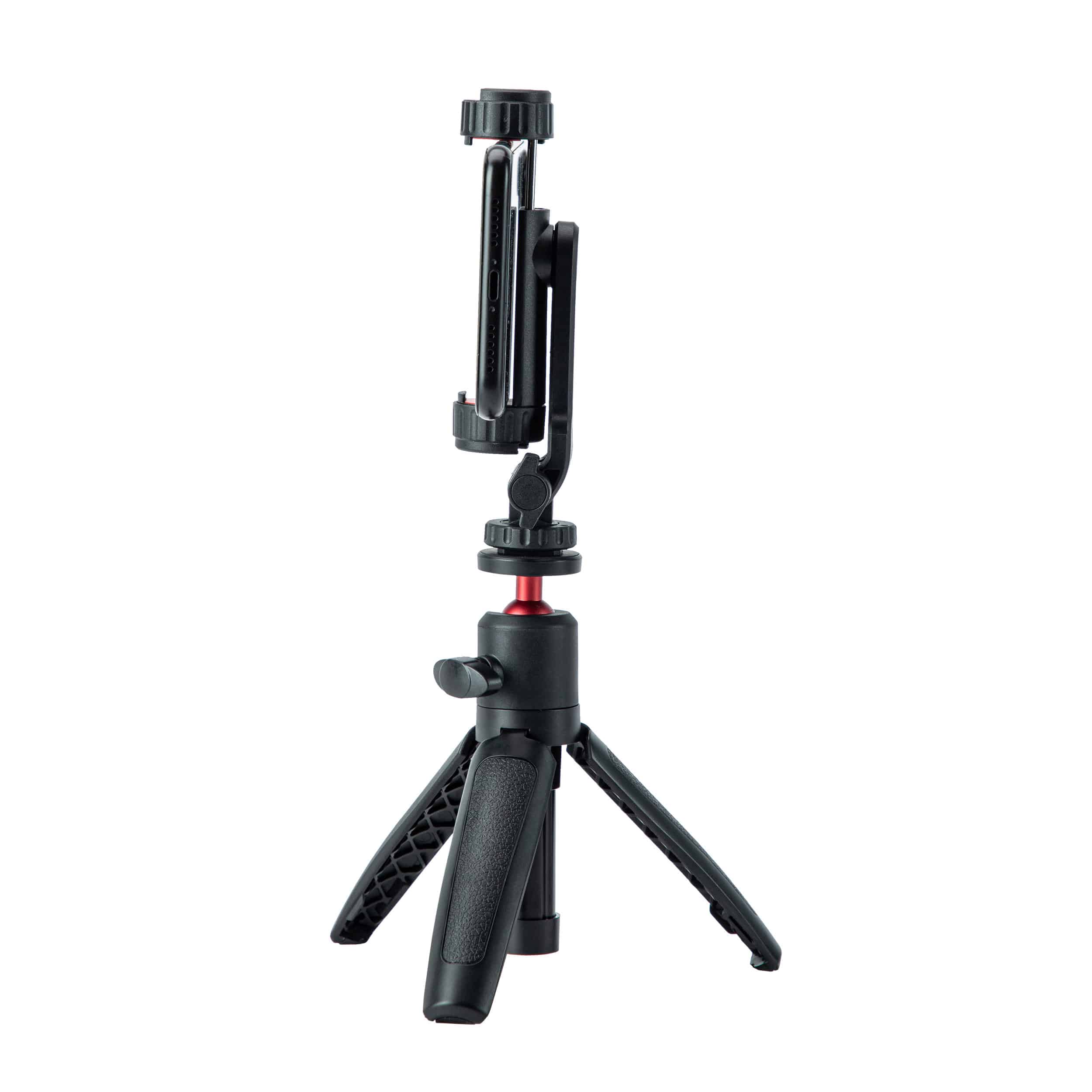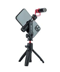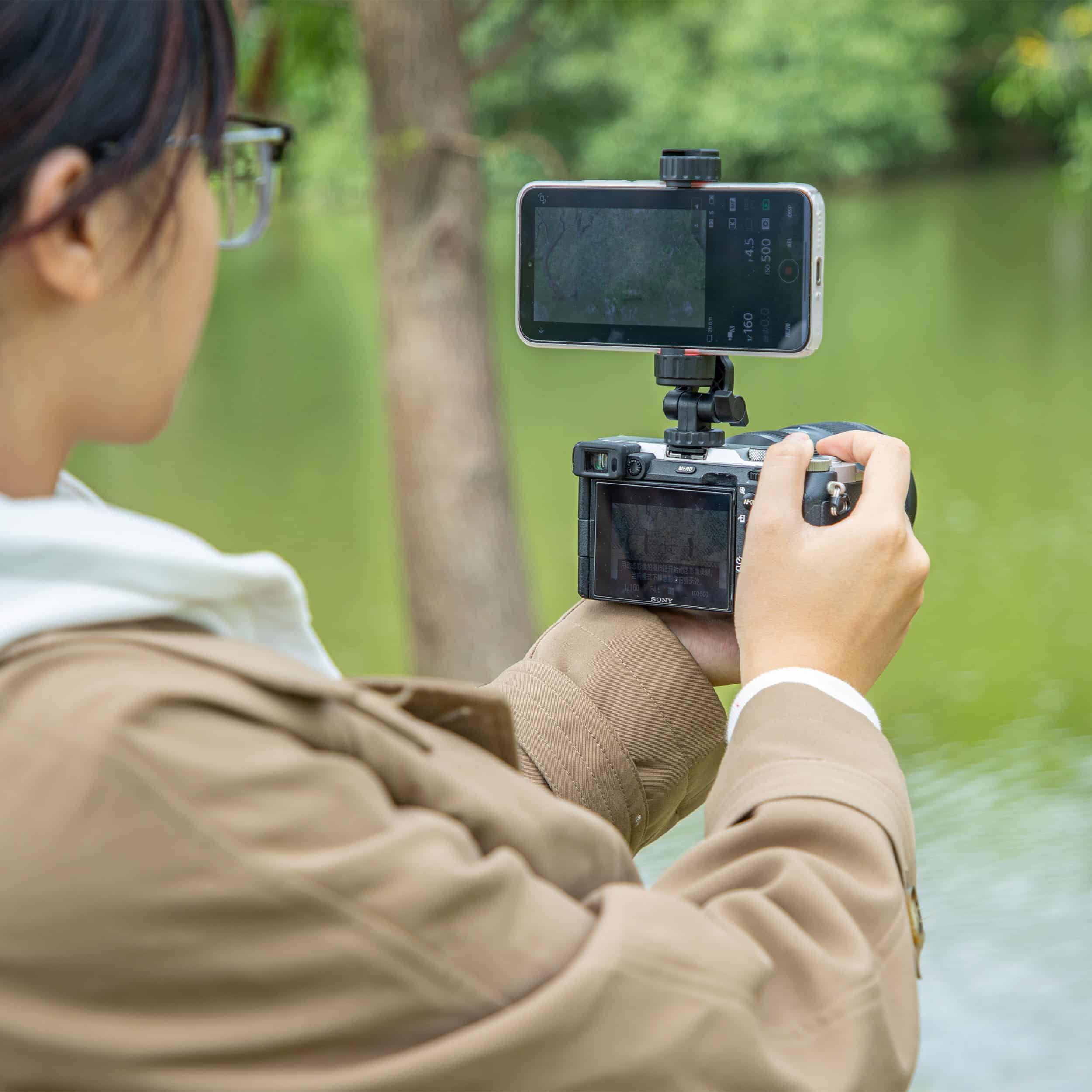 Mount any phone 58-90 mm on camera, tripod or rig. Dual cold shoes for mic & light, 360° rotate, lock-knob, 1/4″ thread. Vlog, live, monitor—1 clip, all angles.