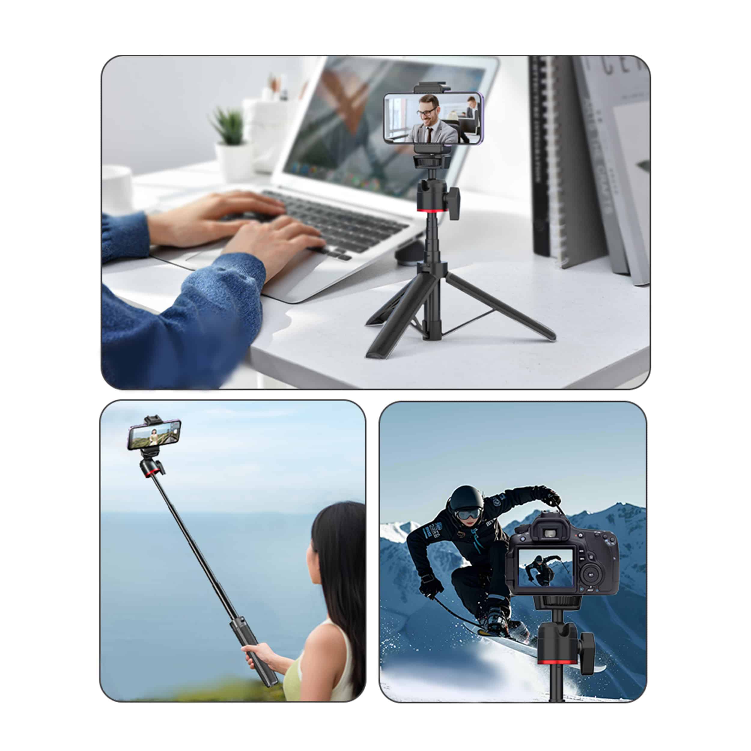 Its 360° ball head and multi-mode design (handheld, selfie, tripod) offer versatile shooting. With a 4.4lbs max load and durable build, it’s perfect for vlogging on the go.